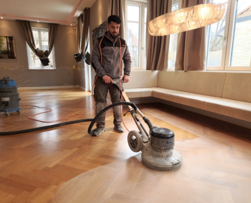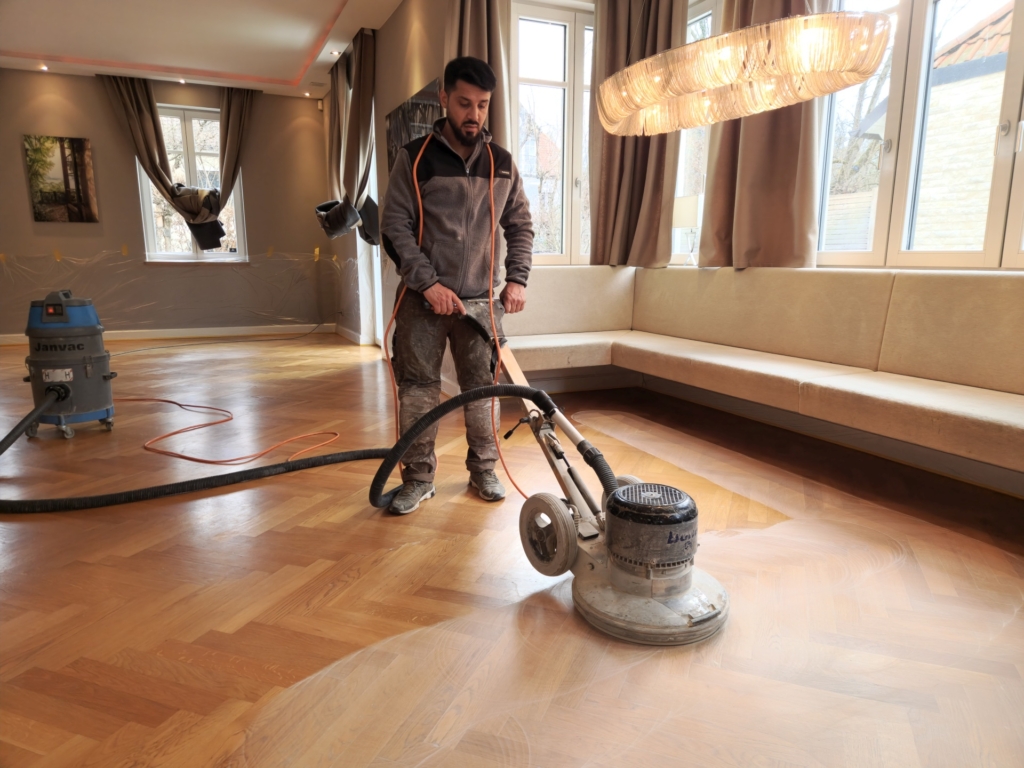 Mit unseren modernen Reinigungsmaschinen, hochwertigem Parkett-Pflegeöl und jahrelanger Erfahrung rund um das Thema Holz und Parkett kümmern wir uns mit viel Liebe darum, dass Landhausdielen, Fischgrät-Parkett oder Schiffsböden wieder richtig schön werden und für eine lange Zeit geschützt bleiben. Je nach Anforderung, Alter und Holzart des Parketts finden wir den besten Weg, Holz und Oberfläche wieder wie neu aussehen zu lassen.