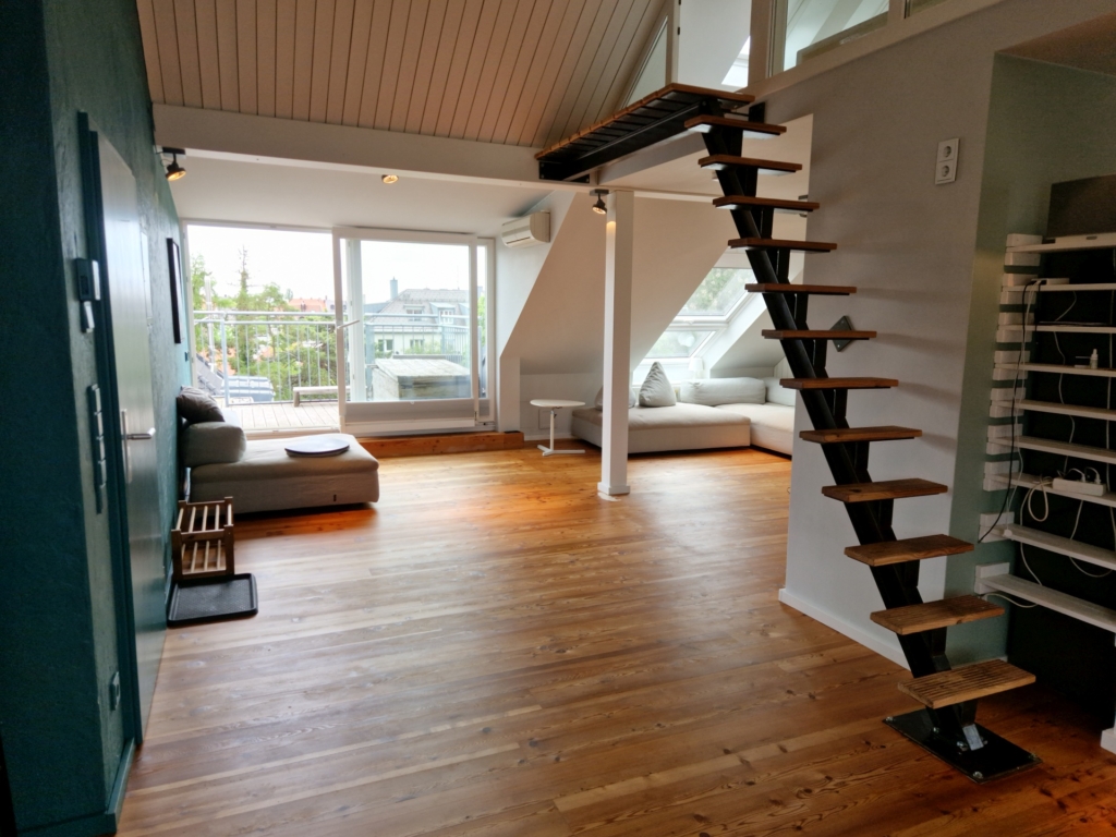 Zunächst waren wir baff erstaunt über die Lage und die supercoole Atmosphäre in diesem Schwabinger Loft in Fußreichweite zur Esso Tankstelle Schwabing an der Dietlindenstraße. Von der Straßenseite her uneinsehbar, mit schöner Dachterrasse und einem wundervollen Blick über die Schwabinger Hinterhöfe des Viertels – ein perfektes Airbnb Hideout.